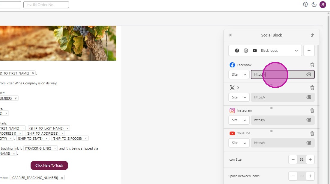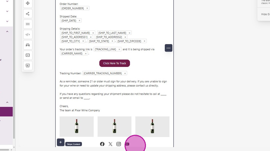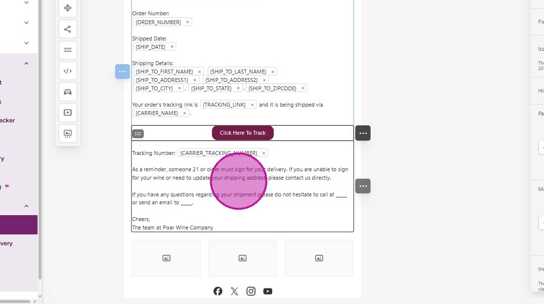 - There is also a section where you can add your social links at the bottom of the email.