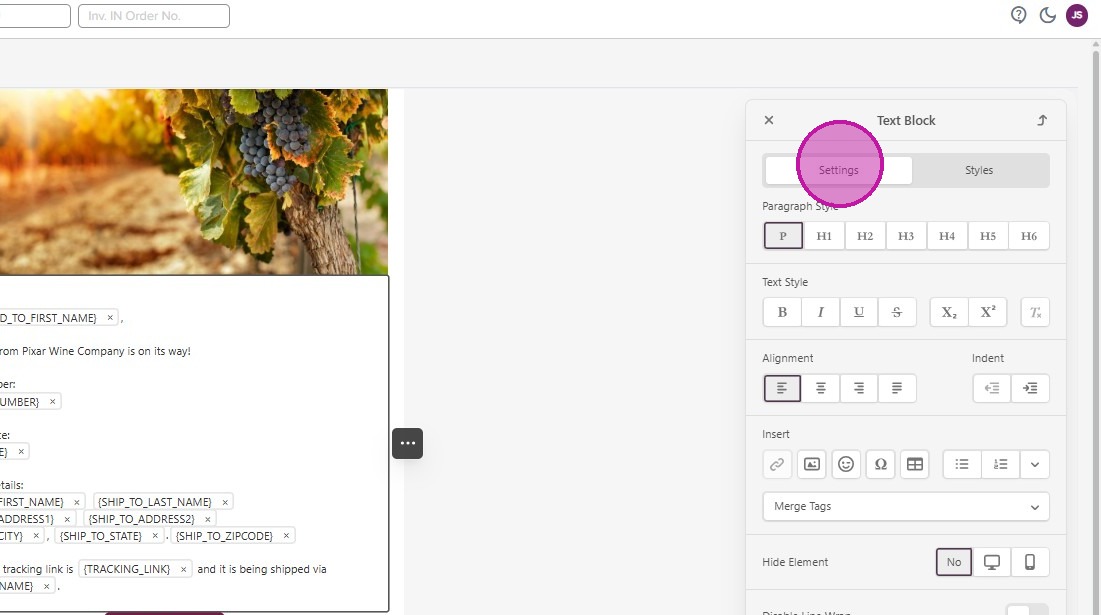 - Down in the text box, you can edit the verbiage and add or change the Merge Tags here.