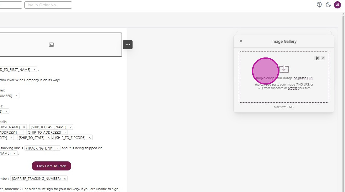 - The image import prompt opens for you to upload, drag and drop or paste your image URL.