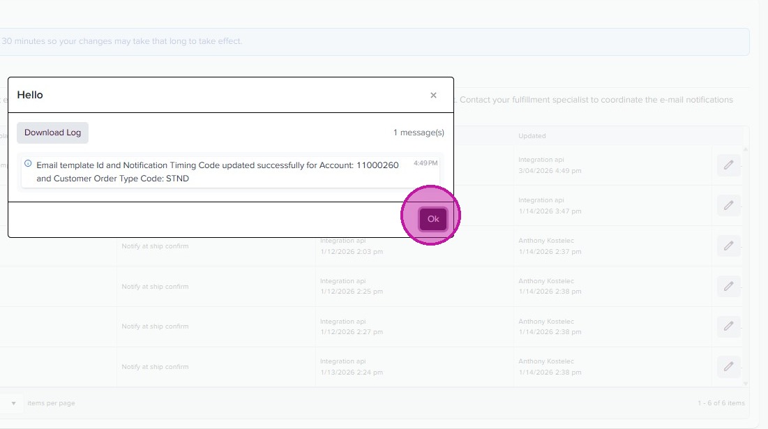 - You’ll receive a confirmation. Click “Ok”