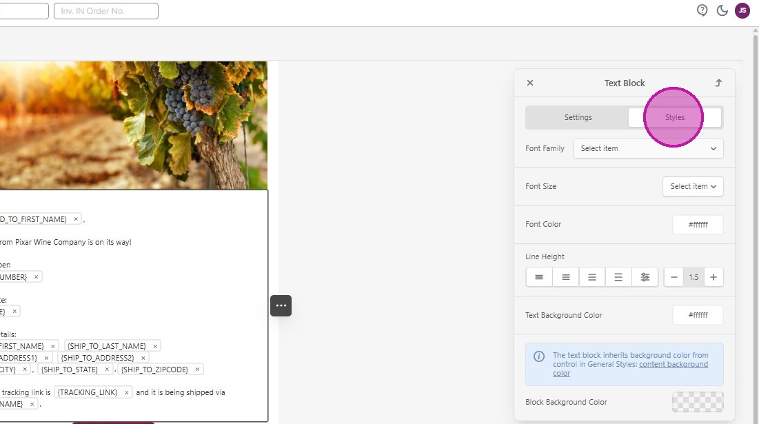 - Within the editing panel, you can format and change the styles of the contents of your text box.