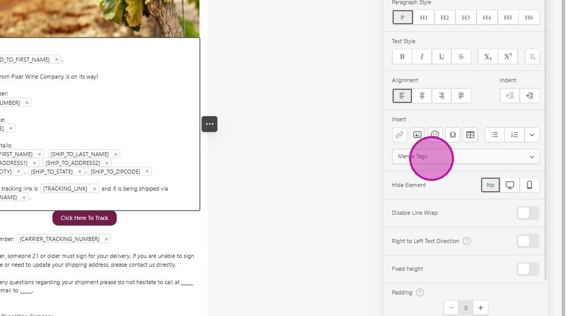 Merge Tags are a great way to personalize your message and include shipment specific details.